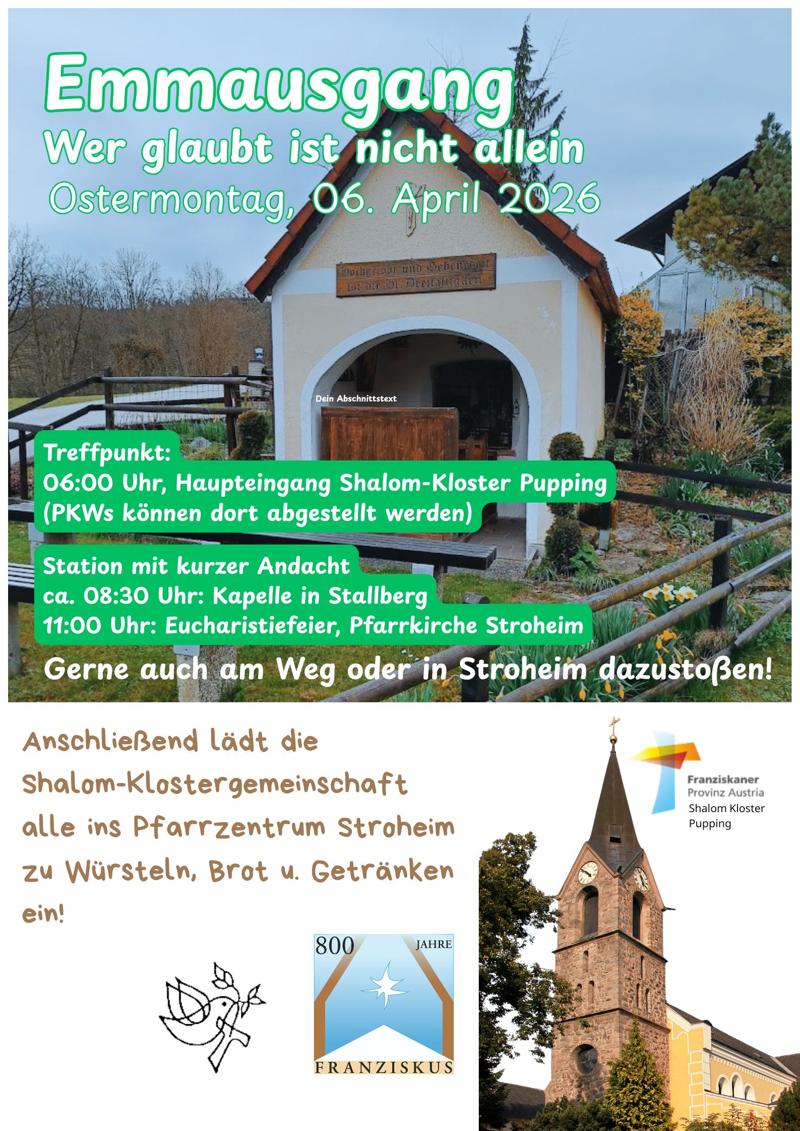 Anmeldungen erbeten: 07272-5896 oder pupping@franziskaner.at